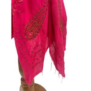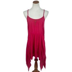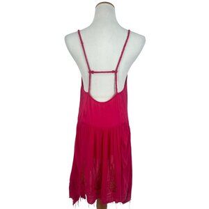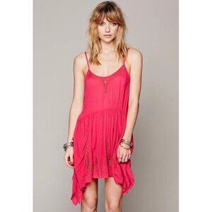 RARE NWT Free People Pink & Gold Embroidered Asymmetrical Boho Gypsy Slip Dress