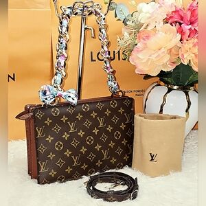 the long strap canvas is authentic Louis Vuitton strap, the chain strap is unbranded , I just added that for another option to wear.