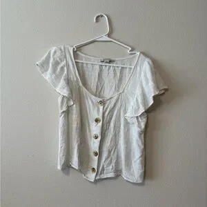American Eagle Outfitters Cream Button-Front Blouse