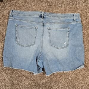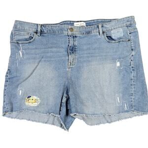Lane Bryant women's plus size 22W blue distressed denim boyfriend shorts with a Star Wars patch.