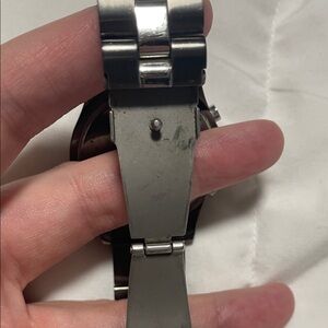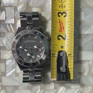 Chic chronograph watch by Marc by Marc Jacobs. Features a sleek silver face with chrome accents. Perfect for any occasion.