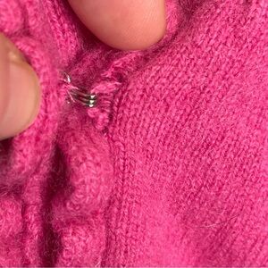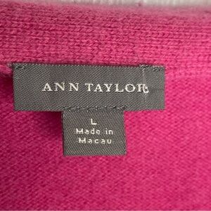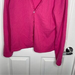 Ann Taylor 100% Cashmere Ruffled Neckline Cardigan Rhinestone Closure in Pink L