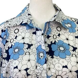 Talbot's Floral Bouquet Long Sleeve Blue/White Button Down Blouse (Size S)
