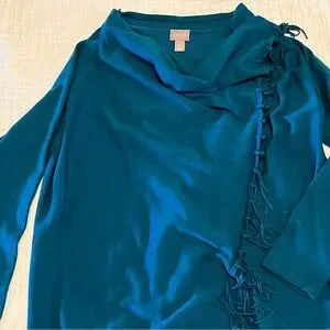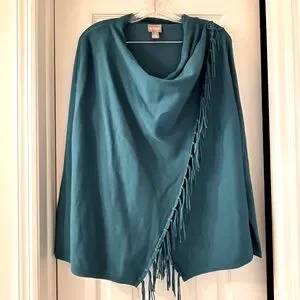Chico’s Drape Fringe Shawl Sweater Teal
