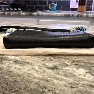 • Classic black pebbled leather with subtle embossed logo