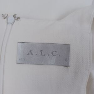 Elegant white sleeveless dress by A.L.C. Features a fitted bodice and pleated skirt. Perfect for any occasion.