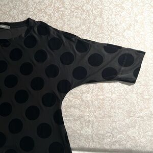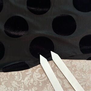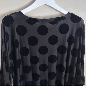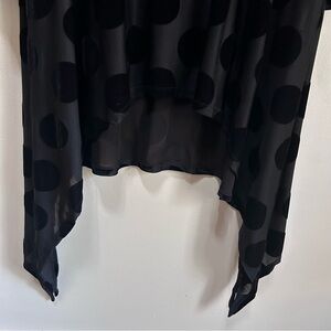 Alembika ~ Black semi sheer hi-lo asymmetrical hem black velvet polka dot tunic top *with flaw (3 pictures included)
