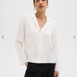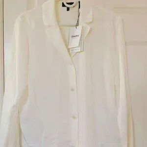 NWT Theory Silk Notched Lapel Collar Blouse Shirt