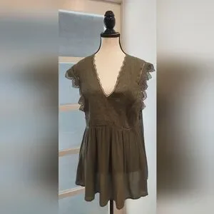 Chic deep green blouse with delicate lace accents. Ideal for stylish outings.