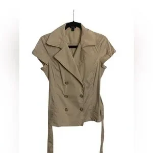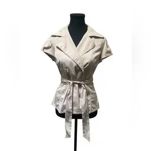 Chic cream jacket/blouse with short sleeves. Features a stylish belt for a tailored fit.