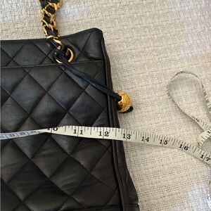 Sophisticated black quilted lambskin design. Gold-tone chain and accents. Iconic Chanel style. Leather interior with 2 pockets. Very clean. No exposed piping. Dust bag included. Has been conditioned and well cared for. Large front and back slit pocket. Lots of room.