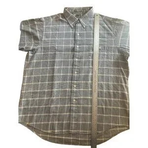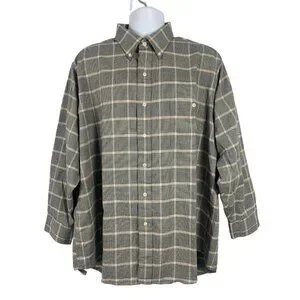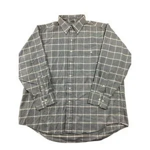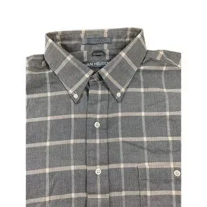 Van Heusen Mens Top Button Up Long Sleeve Gray Plaid Dress Shirt Size 17.5 32/33
