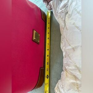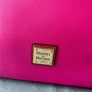 Gorgeous large pink leather tote with brown leather accents. Perfect for everyday use. Durable and elegant design. Dooney and Bourke is the all weather leather! Spacious with inner pockets. Carry your laptop, iPad and other essentials wherever you go. Smoke-free home. Measurements are included in pictures. Questions? Please leave me a comment