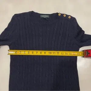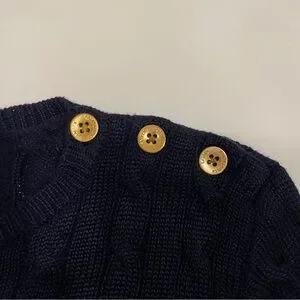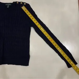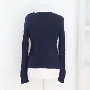 Lauren Ralph Lauren Navy Blue Cable Knit Sweater Button Details Petite Medium