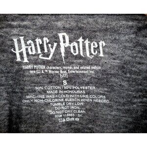 Step into your favorite magical world with this Hogwarts graphic tee, a nostalgic staple for fans of every house. Featuring a vintage-inspired worn-in design with the iconic crest and house mascots in bold colors, this top channels cozy wizardcore with a dash of academia. The heathered gray color adds an effortlessly lived-in vibe, perfect for pairing with denim jackets, oversized cardigans, or plaid skirts, subtle dark academia, or soft grunge aesthetic. Lightweight and breathable, this tee is ideal for lounging, layering, or styling for themed events and cozy reads at your favorite café. Whether you're a Gryffindor dreamer or a Slytherin schemer, it’s the perfect comfy addition to your fandom fashion rotation. A must-have for any Muggle wardrobe.