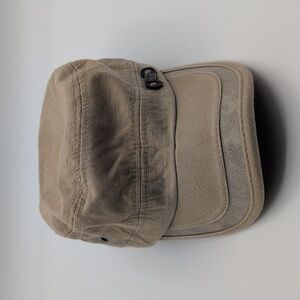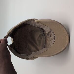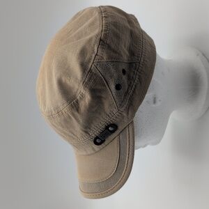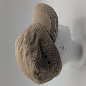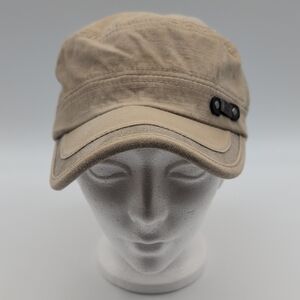 Stylish tan military style cap with button detail. Perfect for casual wear.