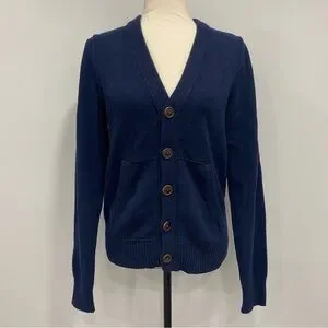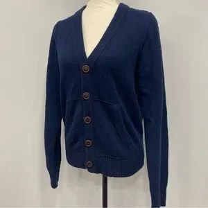 A&F Women’s M Navy Blue Grandpa Cardigan Knit Sweater Wool Cashmere Warm Winter
