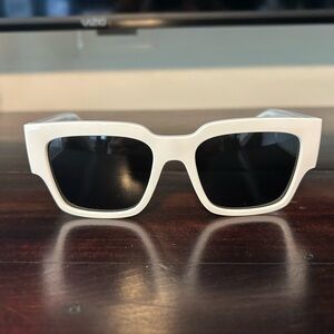 Chic white sunglasses with bold Dolce & Gabbana branding. Sleek and modern design.