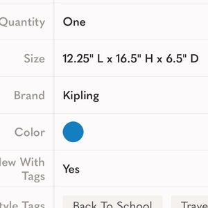 - Designer Brand Label: Kipling