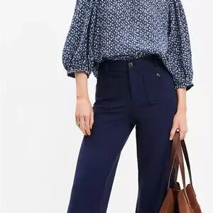 Chic wide leg pants in navy. Perfect for versatile styling. These are in excellent preowned condition. High waisted and very flattering. Smoke free home.