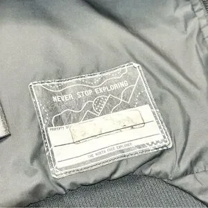 Flaws: Logo is coming off of the zipper pull. There used to be a name sticker on the name patch on the inside. Both flaws pictured.