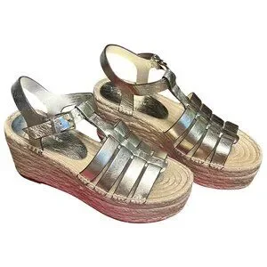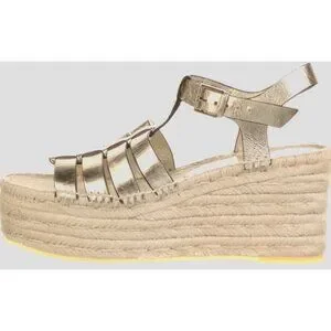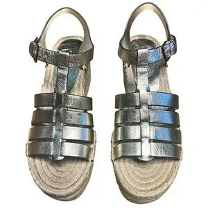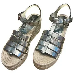 Tory Burch Gold Fisherman Espadrille Sandals Size 5.5 Rare Platform Wedge