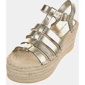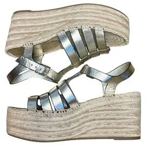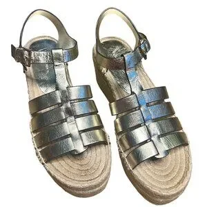 Tory Burch Espadrille Wedge Sandals Spark Gold Metallic Leather New Size 5.5