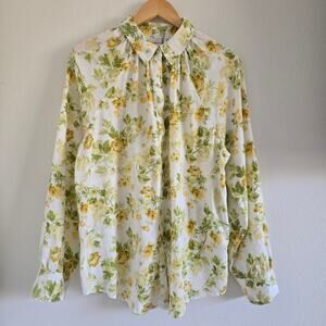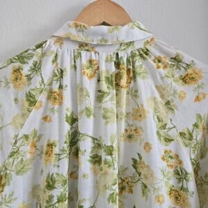 Laura Ashley Linen Blend Yellow Floral Raglan Button Up Shirt Size L Cottagecore