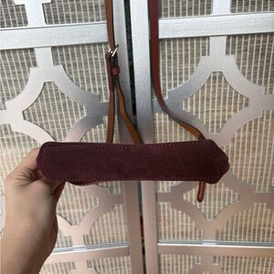 crossbody Bag a rich burgundy color With some brown tones. Has adjustable strap. Is Authentic, and is in Great Condition!