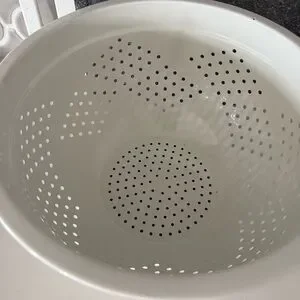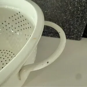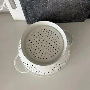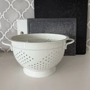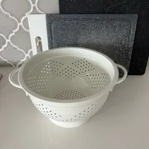 Elegant white colander. Perfect for rinsing and draining. Durable and stylish.