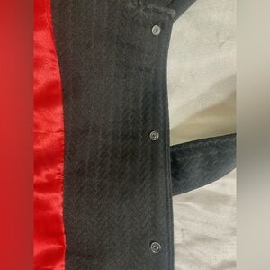 Tulle labeled black with red lining jacket/fitted blazer. Button closure and belt tie. Very chic. Good condition, no tears/stains/etc.