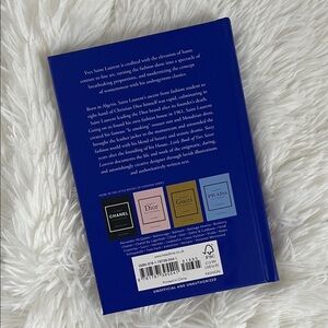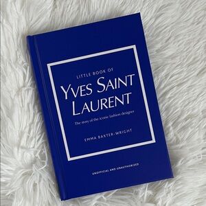 Explore the iconic fashion journey of Yves Saint Laurent with this stylish blue book. Great to read or display. In new unused condition.