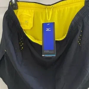 Mizuno mens Black and yellow Athletic running Shorts, medium