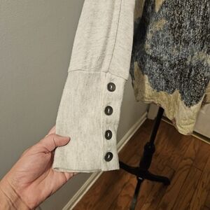 Lovely knit sweater in a soft cream color featuring a mountain print.