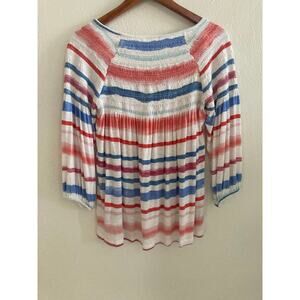Anthropologie Meadow Rue Smocked Striped Tunic Top Blouse S