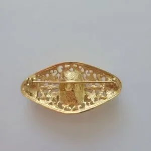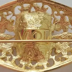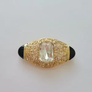 Vintage Brooch Pin Signed Tova Gold Tone Black Enamel Rhinestones Art Deco