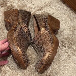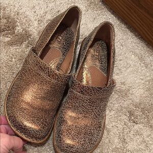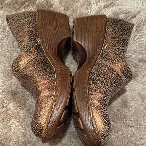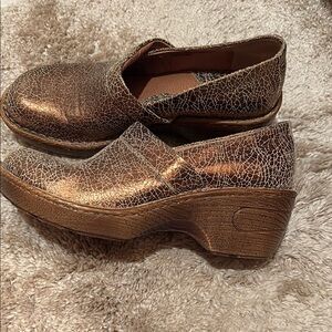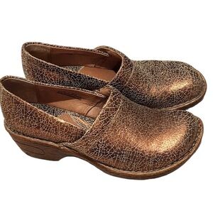 New NWOT Born Women's Bronze Crackle Clogs shiny 6