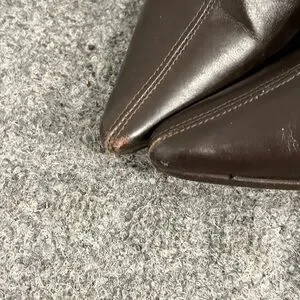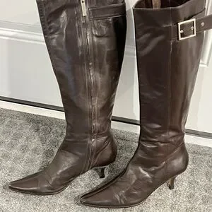 Beautiful dark chocolate brown soft yet sturdy leather. Pointy toe for a classic look with kitten heels. Silver hardware. Made in Italy 🇮🇹- genuine leather. EUC.