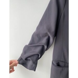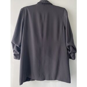 H&M Ruched Sleeve Blazer Jacket M Grey Open Front Career Minimalist