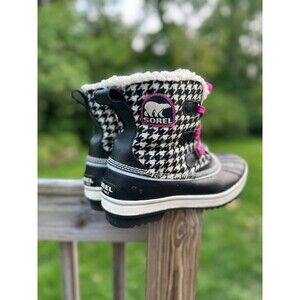 Sorel Tivoli Houndstooth Pink Black Boots Womens Size 10 Lined Fleece Winter