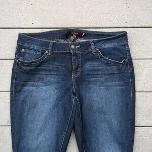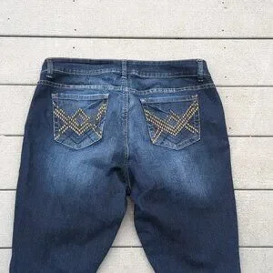 Torrid Denim size 16 Darkwash straight fit jeans. stretch material. 32in inseam. excellent like new condition with no rips or tears on jeans, but some back rhinestones are missing. price reflects this.