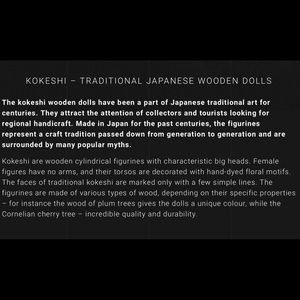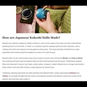 “Traditional Japanese garments are often painted onto Kokeshi Dolls, mostly representing Kimono and Yukata. It