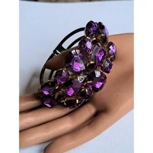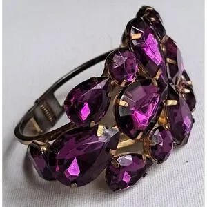 VTG Bold N Beautiful Purple Rhinestone Clamper Bracelet 1960's