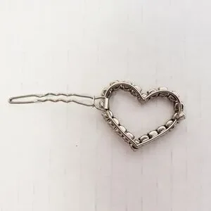Add a touch of elegance to your look with this sparkler l! Silver in color, heart-shaped hair barrette. Perfect for all hair types and lengths!