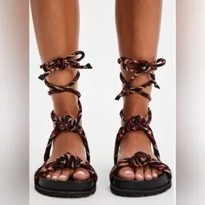 Free People Resort-Ready Wrap Sandals in RED/ROUGE NWT