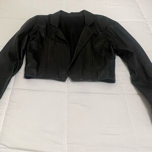 Sleek and stylish black leather jacket for women. Perfect for any occasion.