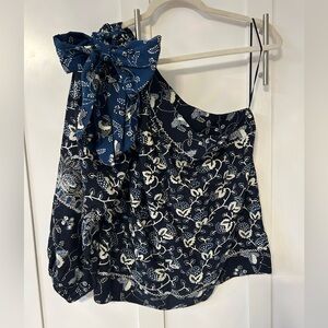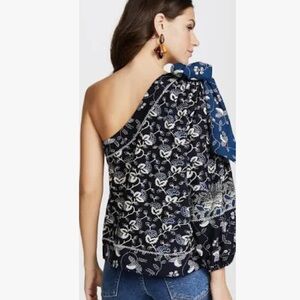 ULLA JOHNSON Asima floral one shoulder puff sleeve top