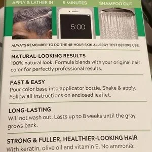 Instantly eliminates 100% of gray hairs and very easy to apply. New in box. Light Medium Brown. This easy-to-use formula provides 100% gray coverage, ensuring a youthful appearance. Perfect for maintaining your original hair color effortlessly.