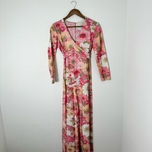 Vintage Sears Floral and Glitter Wrap Long Sleeve Maxi Gown