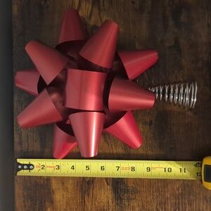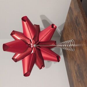 Elegant red decorative bow tree topper. Perfect for adding a festive touch.